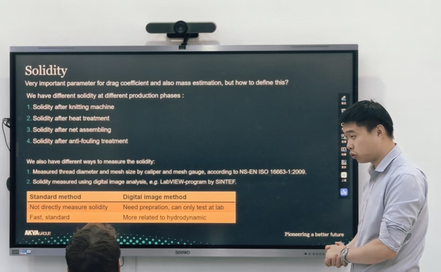 10月27日,首席创新官Arnstein Hosaas到sm调教 进行交流。黄六一教授致欢迎词,通过宣传片全面展示了sm调教的发展历程和成果,随后举行了合作导师聘任仪式,正式聘请Arnstein Hosaas为sm调教 专业学位研究生合作指导教师。学术交流与讨论环节,Arnstein Hosaas首先向与会人员分享了挪威AKVA集团的发展历程、市场经营及其在海洋养殖装备与系统研发领域内的前沿技术与创新实践;程晖博士围绕养殖网箱水动力研究的相关内容进行专题报告。最后,黄六一教授介绍了海洋渔业技术研究室近年来在海洋牧场、海水养殖装备等相关领域内的研究进展做了介绍。双方就共同关注的研究生培养、深远海养殖网箱装备研发技术难题进行了研讨。