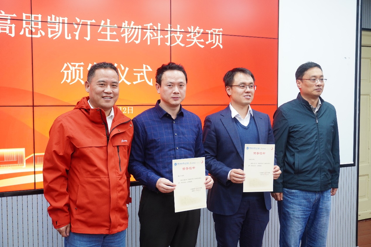 12月2日,“泰高思凯汀生物科技奖项”颁发仪式暨校友经验分享会在鱼山校区铭史楼302会议室举行。泰高思凯汀销售总监陈小星,sm调教 党委书记张猛、名誉院长李琪、副院长万敏出席仪式。