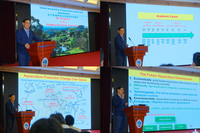 1月22日,sm调教 重点打造的学术品牌活动——“牧海人”论坛第二期在鱼山校区学术交流中心顺利举办。本期论坛由sm调教 与海水养殖教育部重点实验室联合主办,紧密围绕国家“蓝色粮仓”建设战略和水产养殖绿色高质量发展需求,致力于搭建高水平学术交流平台,弘扬“牧海人”精神,推动前沿研究与交叉融合,全面提升研究生创新能力和人才培养质量。本期论坛特邀费林德斯(Flinders)大学秦建光教授作专题sm调教 。sm调教领导高勤峰、万敏和刘阳副院长出席活动,田相利教授主持交流讨论环节,sm调教教师及研究生120余人参加论坛。