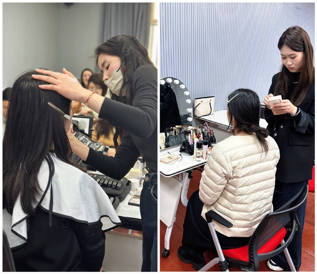 本次工作坊采用“集中讲解+分散指导”相结合的方式,兼顾理论学习与实操体验,让参训教师学有所获、学以致用。授课老师围绕日常妆的核心技巧展开讲解,从底妆轻薄服帖、眼妆简约勾勒,到定妆与补妆的实用技巧,内容贴合日常需求,讲解通俗易懂、干货满满。同时现场演示妆容完整流程,让老师们直观掌握妆容打造要点,大家认真聆听、踊跃提问,现场学习氛围浓厚。在分散指导环节,针对老师们在实操过程中遇到的底妆卡粉、眉形画不对称、眼妆晕染不自然等问题,老师手把手耐心纠正,逐一调整妆容细节,结合个人五官特点给出建议。老师们纷纷使用自备化妆品动手实践,相互交流经验、分享心得,切实提升了日常妆容打造技能。
