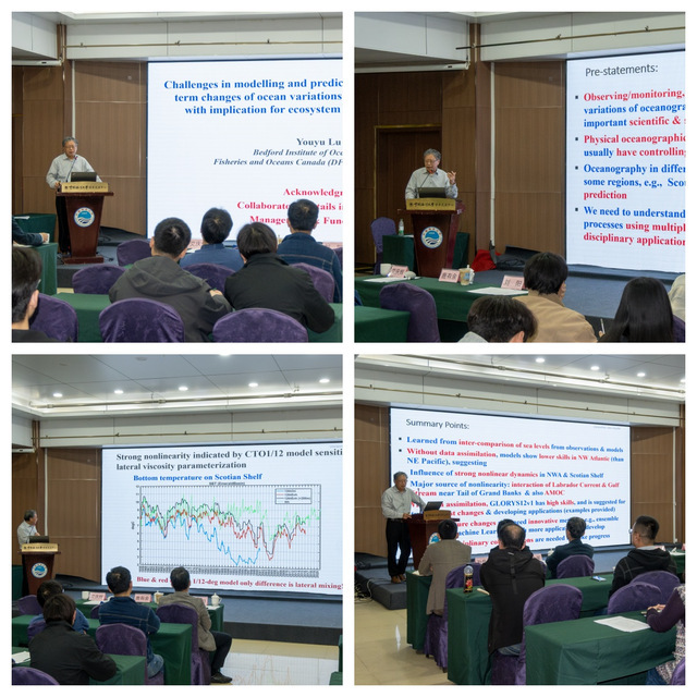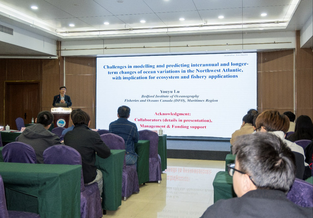 专家讲座阶段,鹿有余研究员做了题为“Challenges in modelling and predicting interannual and longer-term changes of ocean variations in the Northwest Atlantic, with implication for ecosystem and fishery applications(西北大西洋海洋变异年际及长期变化的模拟与预测挑战及其对生态系统和渔业应用的启示)”的sm调教 。研究聚焦西北大西洋(尤其斯科舍陆架)海洋环境的年际及更长时间尺度变化,明确了其模拟与预测过程中面临的关键挑战,同时从物理海洋学角度阐释了海洋环境对于渔业生物生存和渔业资源可持续发展的影响。