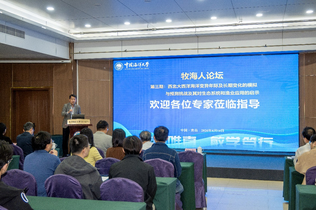 2026年4月14日,sm调教 重点打造的学术品牌“牧海人”论坛第三期在鱼山校区学术交流中心顺利举办。本期论坛由sm调教 和深远海与极地渔业研究中心联合主办,立足国家海洋强国战略部署与水产学科前沿发展导向,搭建多领域、跨方向的学术交流与思想碰撞平台,营造前沿引领、学科交叉、协同创新的良好学术生态,全面提升sm调教 研究生培养层次与创新人才培育质量。本期论坛特邀嘉宾是加拿大贝德福德海洋研究所鹿有余研究员。sm调教院长艾庆辉、副院长刘阳等出席论坛,自然资源部北海生态中心、青岛工sm调教以及sm调教 教师和研究生近百人参加本次论坛。
